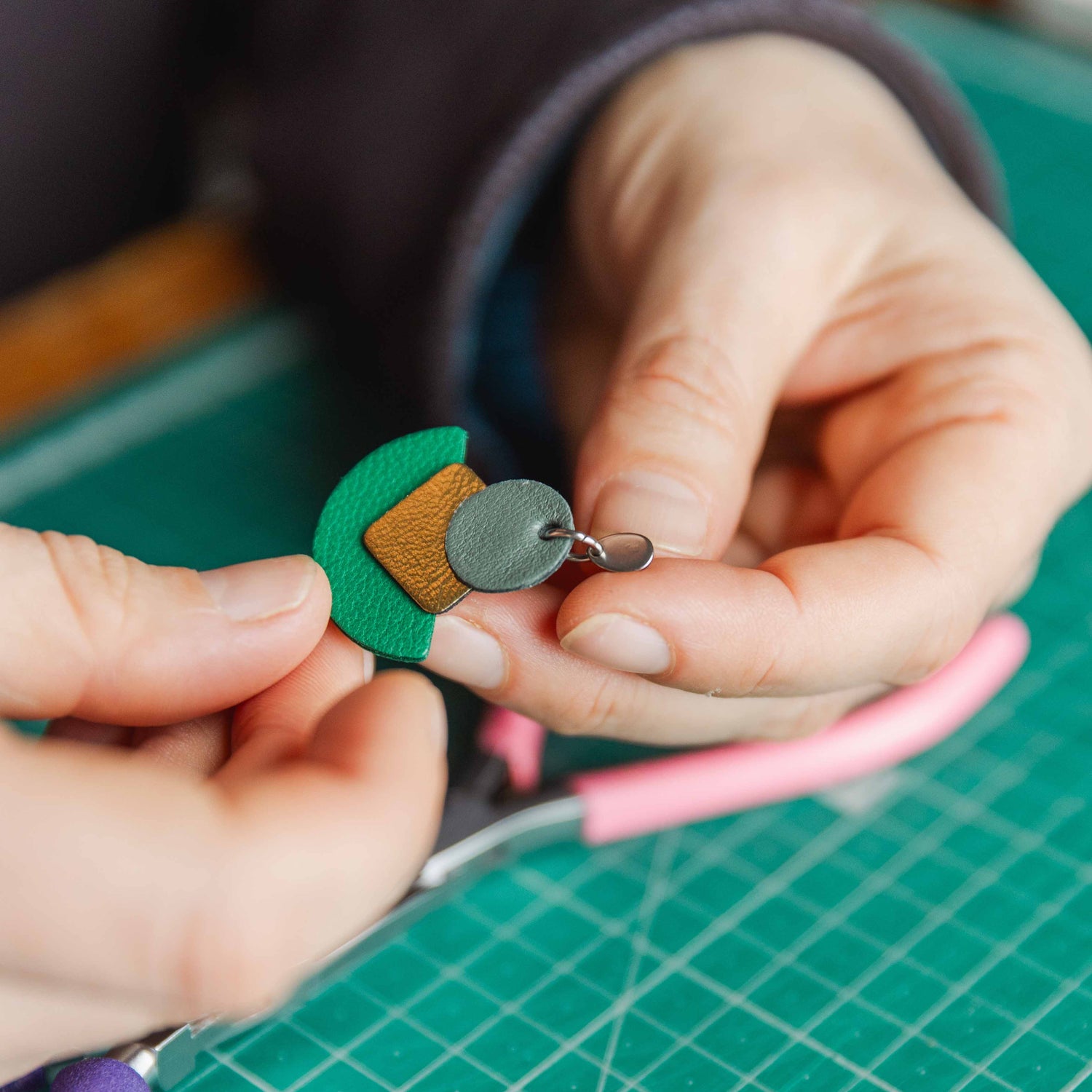 Jessica is a Sheffield based designer and maker, creating colourful jewellery from leather off cuts. She utilises geometric shapes and bold colours to create fun and striking pieces. Taking inspiration from interior design, fashion and nature; the eye-catching designs are joyful and stylish. Using leather off cuts to create her products not only helps to reduce waste but it means the jewellery is lightweight and very comfortable to wear.