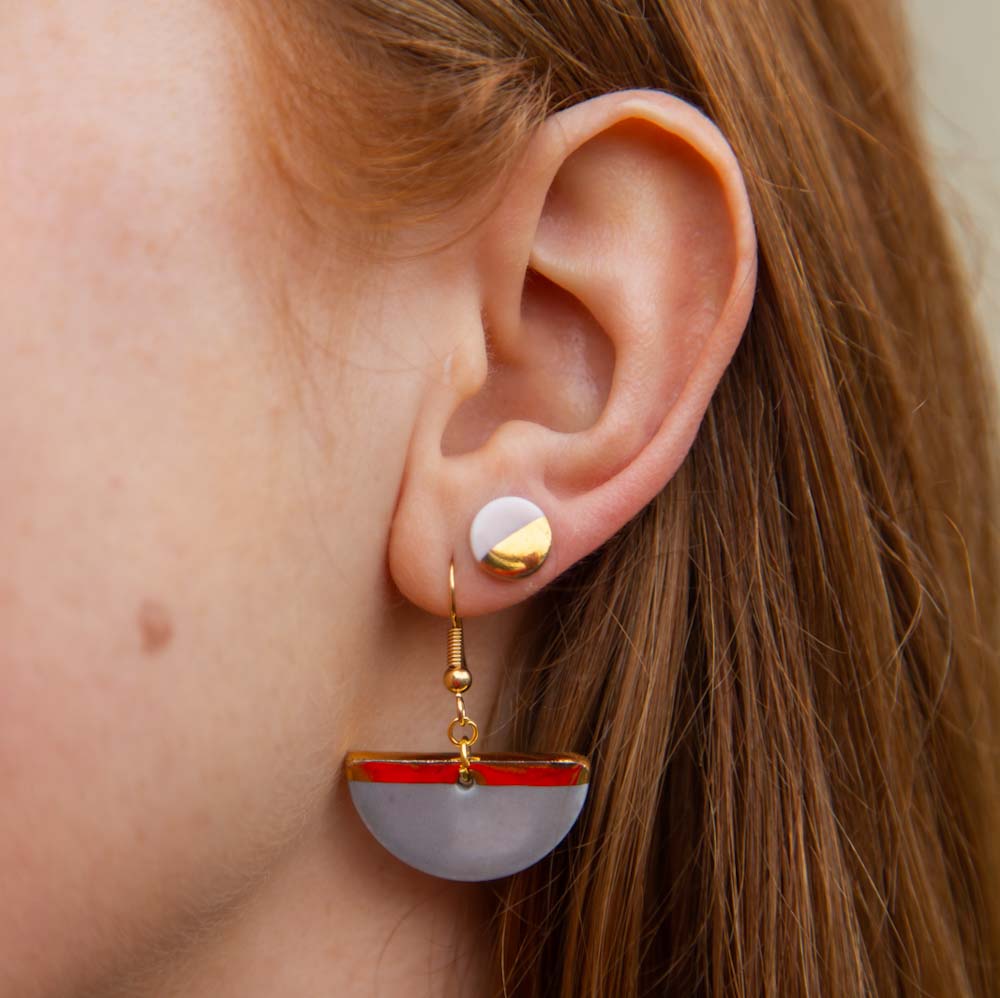 Rolling Roses is the feminine collection of porcelain jewellery by Nottingham based ceramicist Leanne Ball. Drawn to porcelain for its beautiful pure surface and lightweight nature, she uses simple shapes to create timeless easy to wear pieces with a soft pastel colour palette and gold lustre accents.