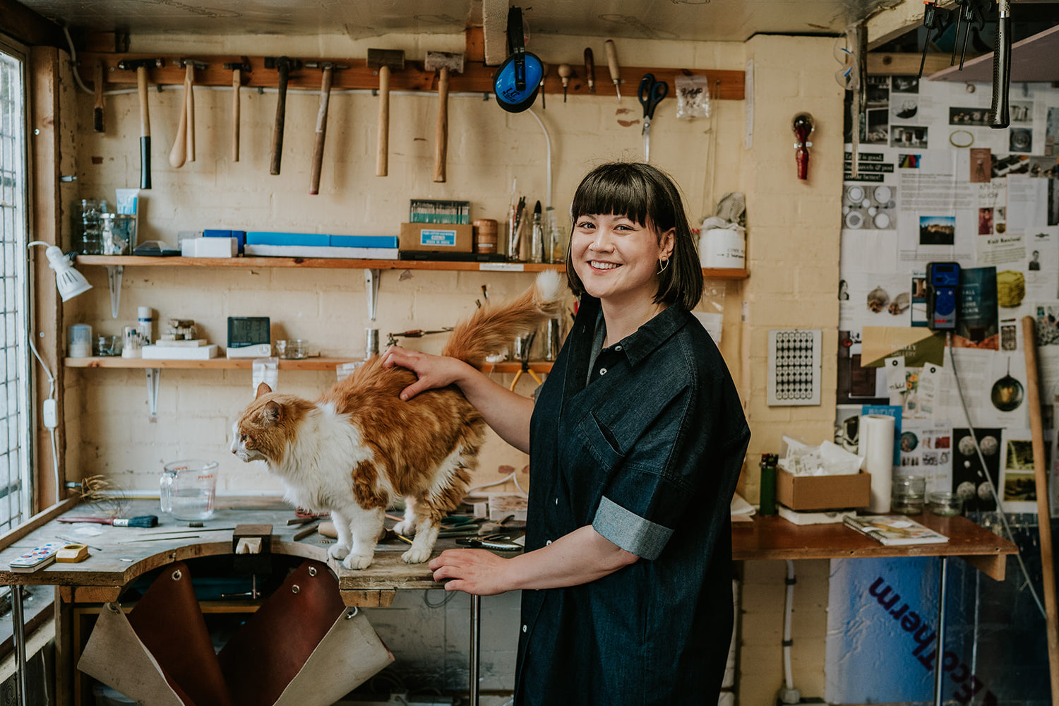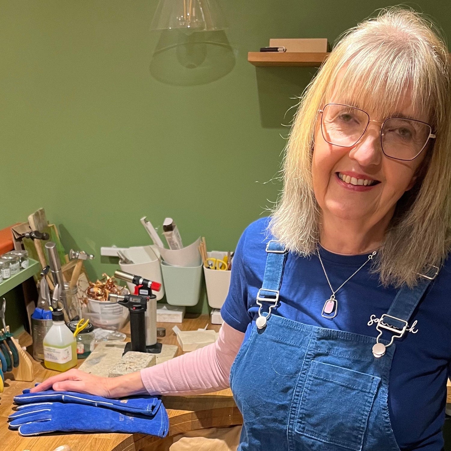 Lynne Marshall is a contemporary jeweller working from her small studio in the Vale of Belvoir, Nottinghamshire. She uses a combination of traditional silversmithing and enameling. Her work is inspired by iconic mid-century forms and abstract art.